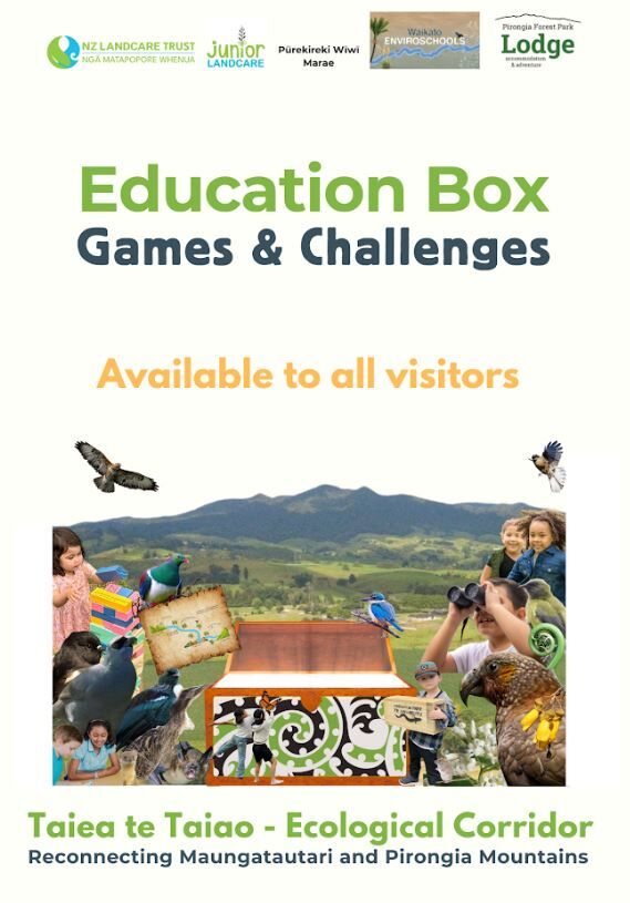 The Education Box comprises fun and easy-to-follow games that can support students learning about the ecological corridor between Maungatautari and Pirongia Maunga. The games can be played in any order and suit a variety of learners - from active games such as the Maunga to Maunga Beanbag Bird Race to communications games such as Biodiversity Bingo and Conservation Charades. Taiea te Taiao has provided this box for free to use.
